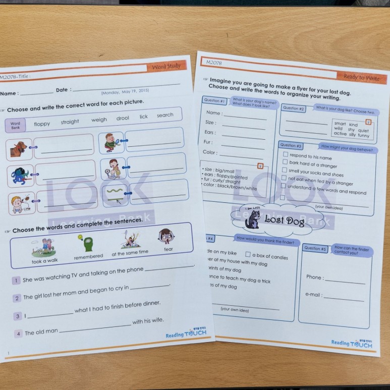매 수업시간 마다 다양한 워크지 활동과 리딩터치로 어휘학습과 북퀴즈도 병행됩니다.